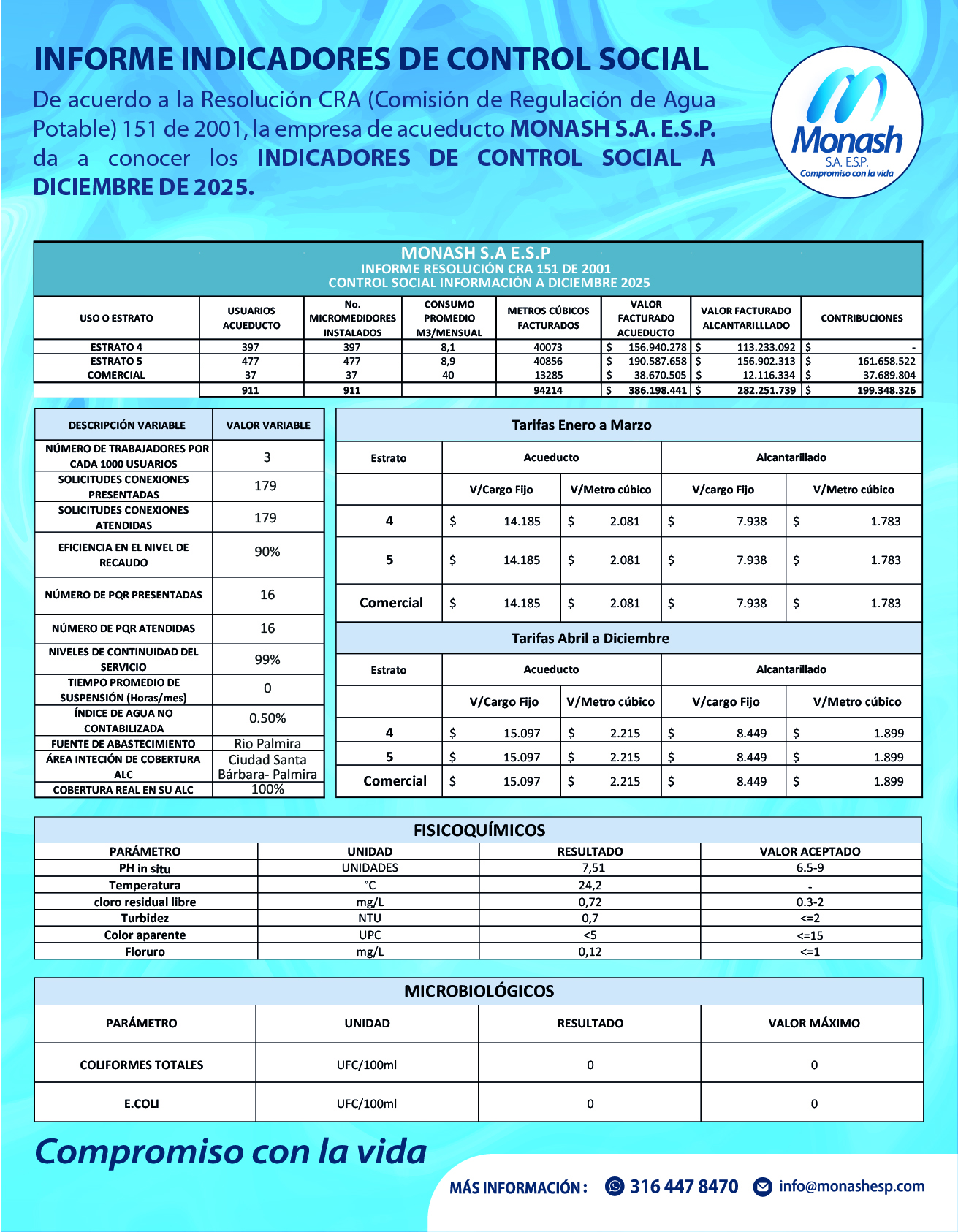 La divulgación de estos indicadores por parte de Monash S.A E.S.P permite a la comunidad y a las autoridades pertinentes evaluar el desempeño de la empresa en términos de gestión social y promover la mejora continua en la prestación de servicios.